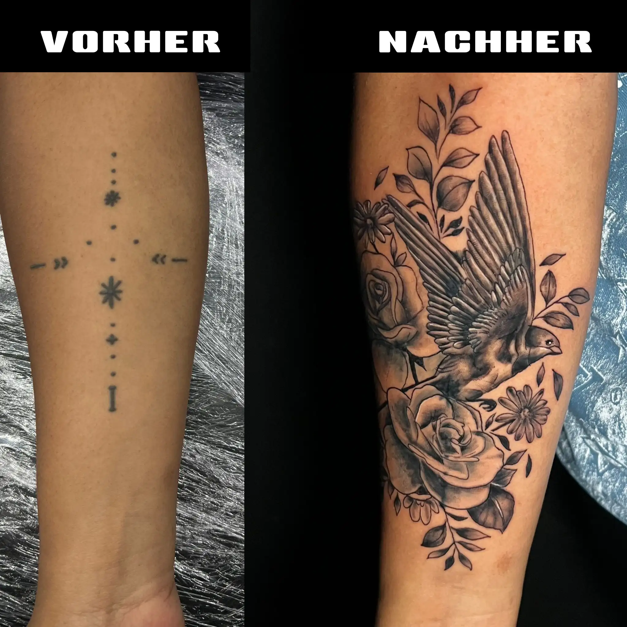 Neues Design statt altem Tattoo. Professionelle Cover Ups kaschieren unerwünschte Tattoos gezielt und stilvoll – für ein frisches Ergebnis mit neuer Ausstrahlung.